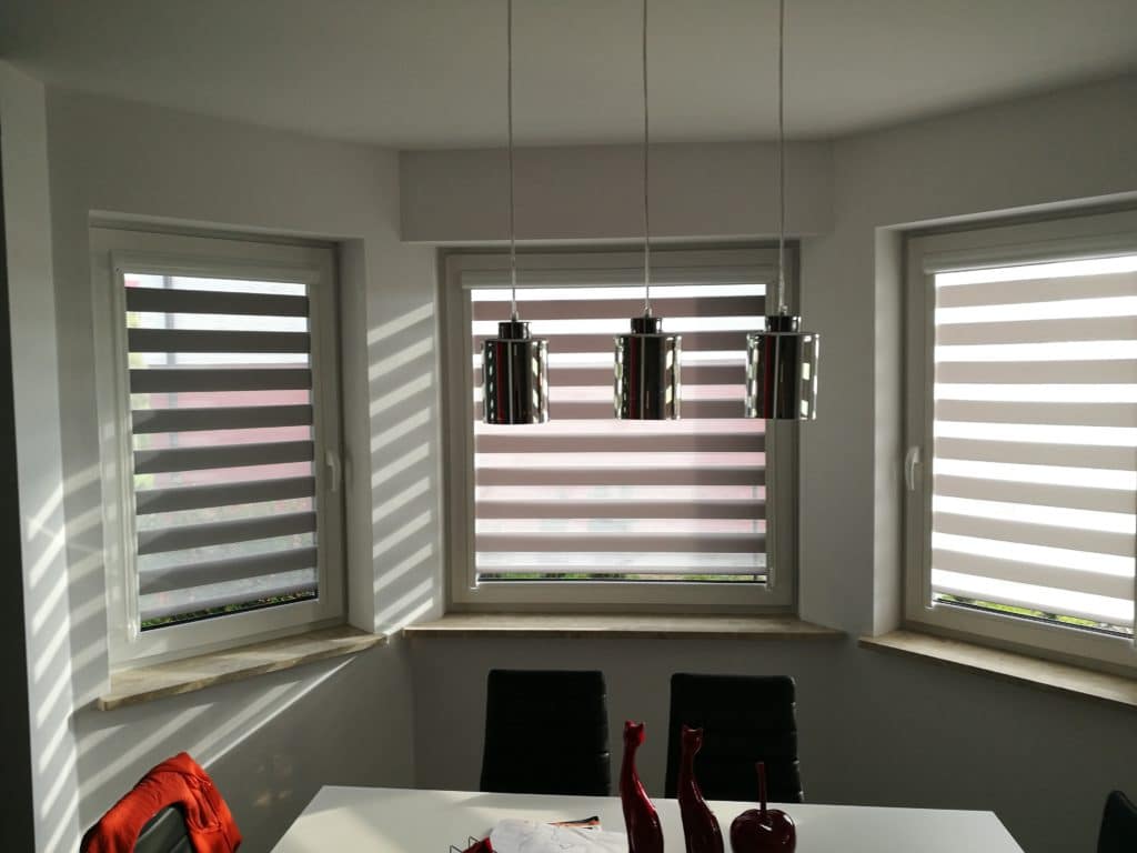 Nowatorskie podejście w zakresie zaciemniania wnętrz prezentują rolety Dzień Noc. Jest to model wykorzystujący dwa rodzaje tkanin – mniej i bardziej przepuszczającą promienie słoneczne. Naprzemienne ich ułożenie sprawia, że możliwości regulacji natężenia światła są bardzo duże – od niemal pełnego dostępu promieni aż do całkowitego zaciemnienia. Rolety dzień noc występują u nas aż w trzech wariantach: klasycznym, mini oraz w kasecie aluminiowej z prowadnicami lub w kasecie PCV z prowadnicami. Rolety mogą być montowane zarówno na skrzydło okienne – przy pomocy uchwytów bezinwazyjnych, jak i do sufitu lub ściany montowanej na zewnątrz wnęki okiennej lub we wnęce na ramie okna. Kasety oraz prowadnice występują u nas w kolorze białym, brązowym, antracytowym oraz w okleinach drewnopodobnych: sosna, złoty dąb, mahoń, dąb bagienny, winchester oraz orzech. Posiadamy w ofercie bogatą gamę kolorystyczną, także dzięki czemu mogą Państwo dopasować produkt do swojego wnętrza.